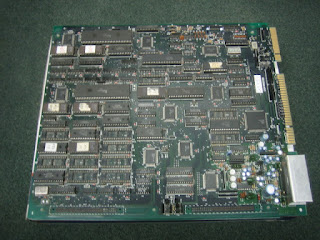 Now lets take a quick look under the hood. You'll see in the pictures above, a very convenient light when the cabinet door is open, a shelf for your PCB, an adjustable main jamma power supply, and a stereo amp with its own independent power supply. Behind the coin door (not shown) is a modern coin mech with electronic coin comparitor, and illuminated power switch with standard test and service buttons. Wiring is for straight jamma (no JVS) with a VGA cable for the monitor.
